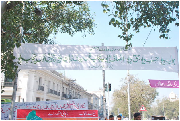 While addressing the protesters, PLM Convener Nazeer Kahut said: The 150-year-old undeclared and unofficial ban on basic education in the mother tongue in Punjab must be abolished.He said Punjab wanted its mother tongue back, demanding stoppage of official discrimination against the mother tongue of 100 million people of Pakistan.