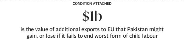 After that, the EU will review the implementation of 27 international conventions relating to human rights, labour rights, environment and good governance in Pakistan to grant this trading facility for another seven years. If Pakistan fails to implement these conventions, it will lose these billions of dollars in trade concessions (Pakistan expects additional annual exports of around $1 billion after getting the GSP-plus status). Out of these 27 conventions, eight are related to labour laws with one specially related to the elimination of the worst form of child labour in the country.