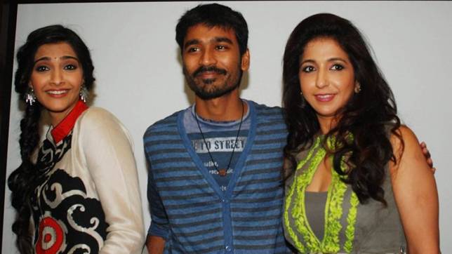 Indian Bollywood actors Sonam Kapoor (right) and Dhanush (centre) with producer Krishika Lulla (right) attend a promotional event for the Hindi film "Raanjhanaa" in Mumbai on June 20, 2013. Pakistan has banned an Indian film about the love affair of a Muslim-Hindu couple on the grounds that it could offend viewers in the conservative Islamic republic, officials said Friday. (AFP/File)